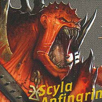 sanguinaires). Si Scyla apprécie l’engouement qu’il déclenche, il ne le montre jamais, et quand le rugissement de la foule s’éteint, que les vainqueurs emportent leur trophée, et que les Gobelins parcourent le terrain pour ramasser les dents en or, Scyla regagne son lointain royaume pour y servir Khorne.