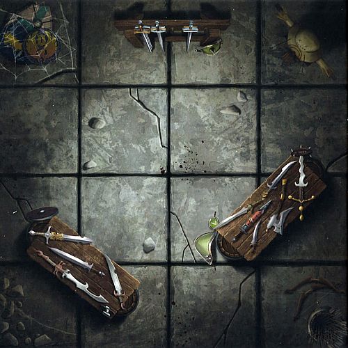 Bien qu'il n'y ait pas besoin d'armes au Blood Bowl, essentiellement car un bon match est déjà bourré de violence, certains donjons conservent une armurerie couverte de poussière. Si un joueur trébuche et tombe en ces lieux, il a une chance d'atterir sur une lame au tranchant assez affûté pour lui causer de sérieux dégâts !
