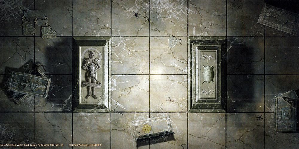 La Crypte compte comme deux éléments infranchissables appelés Tombeaux, de 1 case de large sur 2 cases de long, et que l'on traite comme un mur, bien qu'ils ne bloquent pas la Ligne de Vue. De plus, si un joueur est censé être poussé contre un Tombeau, il est Plaqué et le jet d'Armure qui s'en suit a un modificateur de +1.