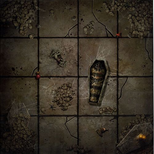 Les donjons peuvent être dangeureux, et au fil du temps, nombreux sont ceux qui ont péri entre leurs murs. Il n'est pas rare que les dépouilles de ces malheureux soient réunies dans une seule pièce, sans que personne ne sache vraiment qui ou quoi collecte les ossements. Quoiqu'il en soit, ce spectacle morbide peut déstabiliser les joueurs...